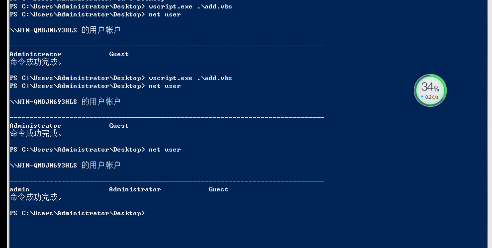 使用vbs添加用户绕过360,成功添加: